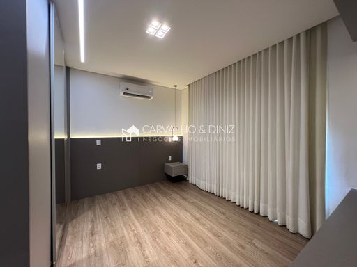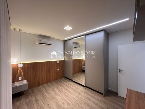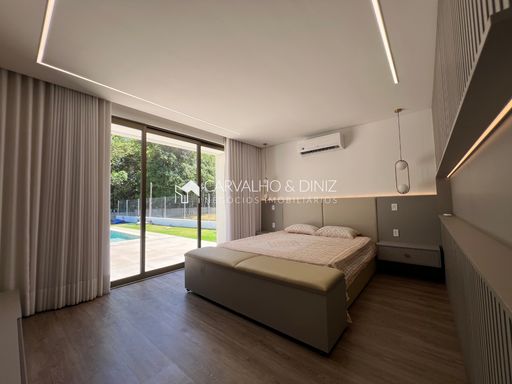 Conforto para toda a família: 4 quartos, incluindo uma suíte master com closet funcional, banheiro espaçoso e acesso direto à piscina. Quartos planejados e climatizados, pensados para acolher com estilo.